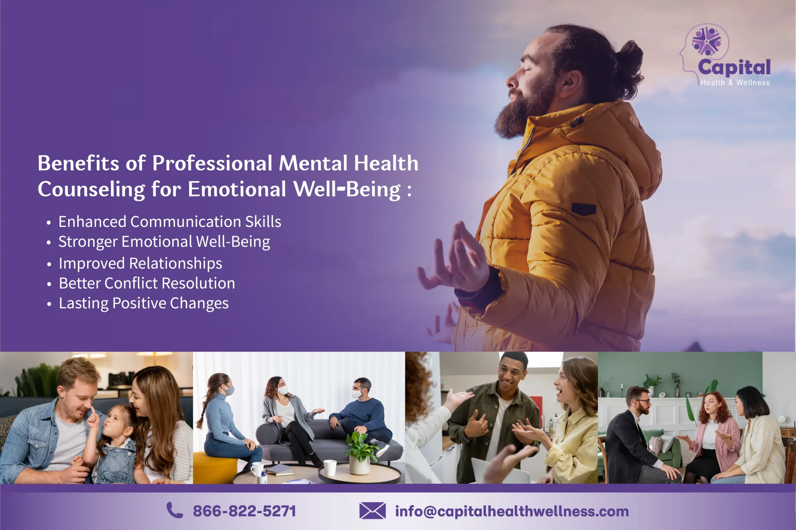 Professional Mental Health Counseling can transform your family’s emotional well-being. Through dedicated mental health counseling services and family counseling, Capital Health and Wellness helps families reconnect, heal, and thrive together.